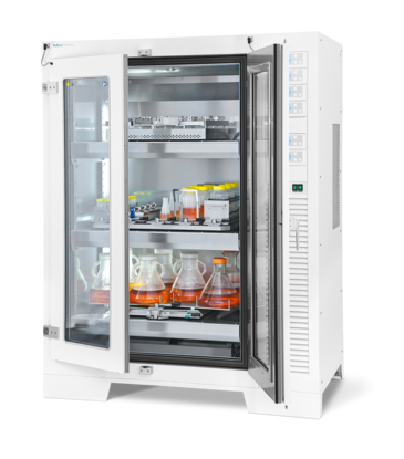 Broszura w pdfFirma Kühner AG, Szwajcaria jest producentem profesjonalnych inkubatorów CO2 z wytrząsaniem i kontrolą wilgotności zoptymalizowanych do prowadzenia hodowli komórkowych (np. ssaczych). Model ISF4-XC jest jednokomorowym, wielopoziomowym inkubatorem umożliwiającym hodowlę komórek jednorazowo na maksymalnie 4 wewnętrznych wytrząsarkach wyposażonych w uniwersalne lub dedykowane platformy wytrząsające. Każda z wytrząsarek umieszczona jest na osobnej, regulowanej na wysokość półce. Duże, przeszklone i ogrzewane drzwi umożliwiają obserwację prowadzonej hodowli oraz zapewniają łatwy dostęp do wnętrza komory. Otwarcie drzwi powoduje automatyczne, kontrolowane zatrzymanie pracy wszystkich wytrząsarek. Wnętrze komory wykonane jest ze stali nierdzewnej odpornej na środki przewidziane do dekontaminacji. Na żądanie klienta producent jak również autoryzowany serwis zapewnia przeprowadzenie kwalifikacji instalacyjno-operacyjnej IQ/OQ (FAT/SAT).